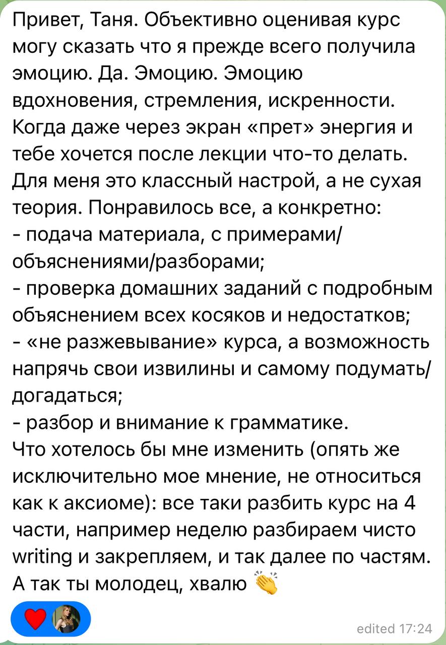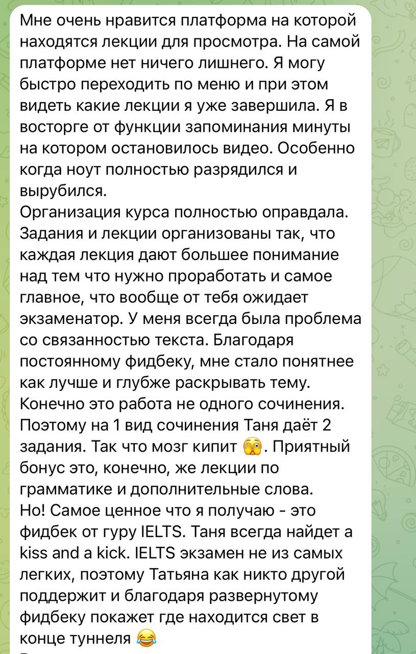 Написание каждую неделю письменных работ (IELTS Writing) с индивидуальной обратной связью от Татьяны