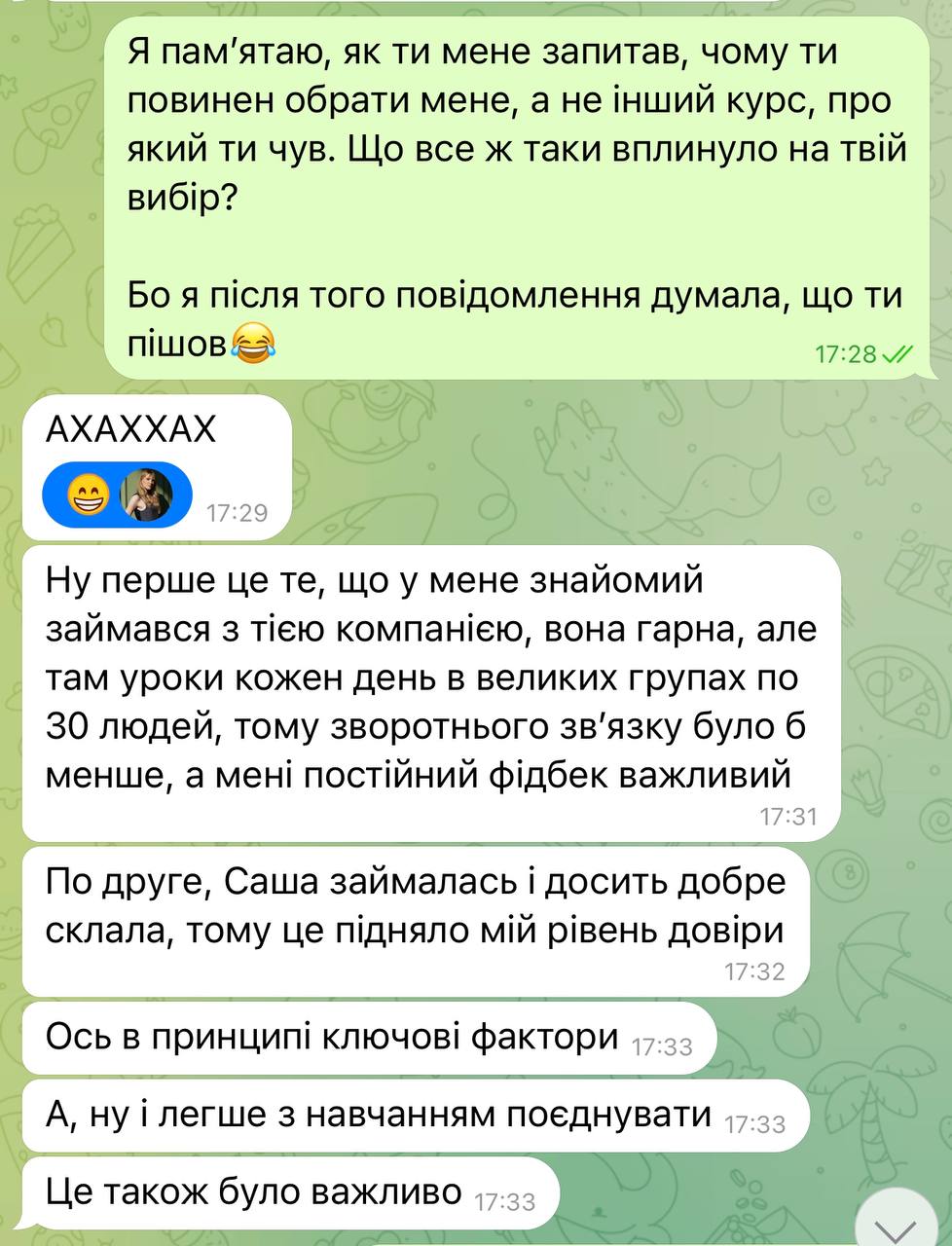 Я получила грант на магистратуру в Литве и Франции, работала в международной компании и открыла свой бизнес. IELTS впервые сдала в 2019 году без подготовки на 7.0, после чего начала помогать знакомым. Тогда я увидела главный недостаток большинства курсов — они дают задания, но не объясняют стратегию и логику экзамена.