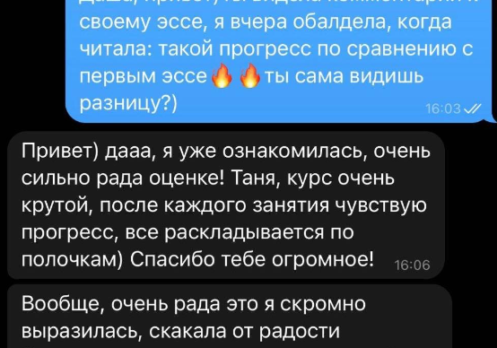 В своей программе я раскрываю, как именно оценивают экзаменаторы, и учу давать им то, что они хотят видеть. Постоянно повышаю квалификацию: консультируюсь с экспертами, проверяю свои работы у действующих экзаменаторов и отслеживаю все обновления теста.
